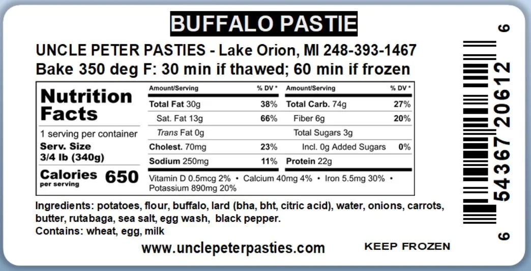 Order Online Categories: All Traditional Specialty Meat Vegetarian Breakfast Dessert Gluten-Free Local Pickup Only All | Traditional | Specialty Meat | Vegetarian | Breakfast | Dessert | Gluten-Free | Local Pickup Only | Bacon Cheeseburger $9.99 Beef $9.99 Beef with Coconut Oil Crust $9.99 Beef Pepper Jack $9.99 Buffalo $9.99 Chicken $9.99 Corned Beef $9.99 Elk $9.99 Egg, Bacon & Cheese $9.99 Egg, Sausage & Cheese $9.99 Extra Beef $9.99 Lamb $9.99 Turkey $9.99 Venison $9.99 Apple $6.99 Cherry $6.99 Gluten-Free Beef $9.99 Gluten-Free Buffalo $9.99 Gluten-Free Chicken $9.99 Gluten-Free Elk $9.99 Gluten-Free Lamb $9.99 Gluten-Free Venison $9.99 Broccoli & Cheese $9.99 Southwest $9.99 Spinach & Feta $9.99 Vegetable $9.99 Mac & Cheese from $4.99 Goulash from $6.99 Stuffed Green Peppers from $6.99 Lasagna from $8.99 Shepherd’s Pie from $8.99 Stuffed Cabbage from $8.99 Gluten-Free Goulash from $6.99 Gluten-Free Mac & Cheese from $4.99 Soup - Baked Potato from $7.99 Soup - Beef Vegetable from $7.99 Soup - Beef Barley from $7.99 Soup - Broccoli & Cheese from $7.99 Soup - Beef Chili from $7.99 Soup - Chicken Noodle from $7.99 Soup - Tomato Cabbage (V) from $7.99 Soup - Lobster Bisque from $8.99 Soup - New England Clam Chowder from $8.99 Soup - Venison Cactus Chili from $8.99 Coleslaw from $1.49 Potato Salad from $1.49 Gravy - Beef from $1.49 Gravy - Poultry from $1.49 Gravy - Country from $1.49 Meatloaf Sandwich on Bread $8.99 Chicken Salad Sandwich on Croissant $8.99 Apple Dumplings $5.99 Pappy Pies $4.99 Brownie $1.50